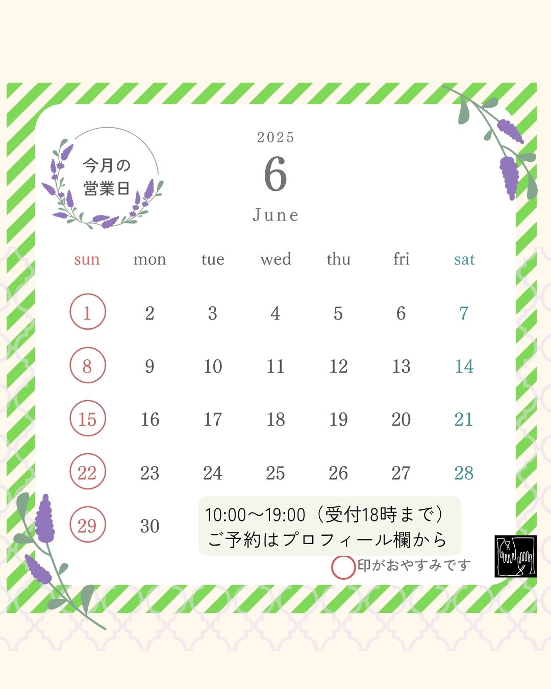 6月は祝日がないので、日曜日のみのお休み予定です。