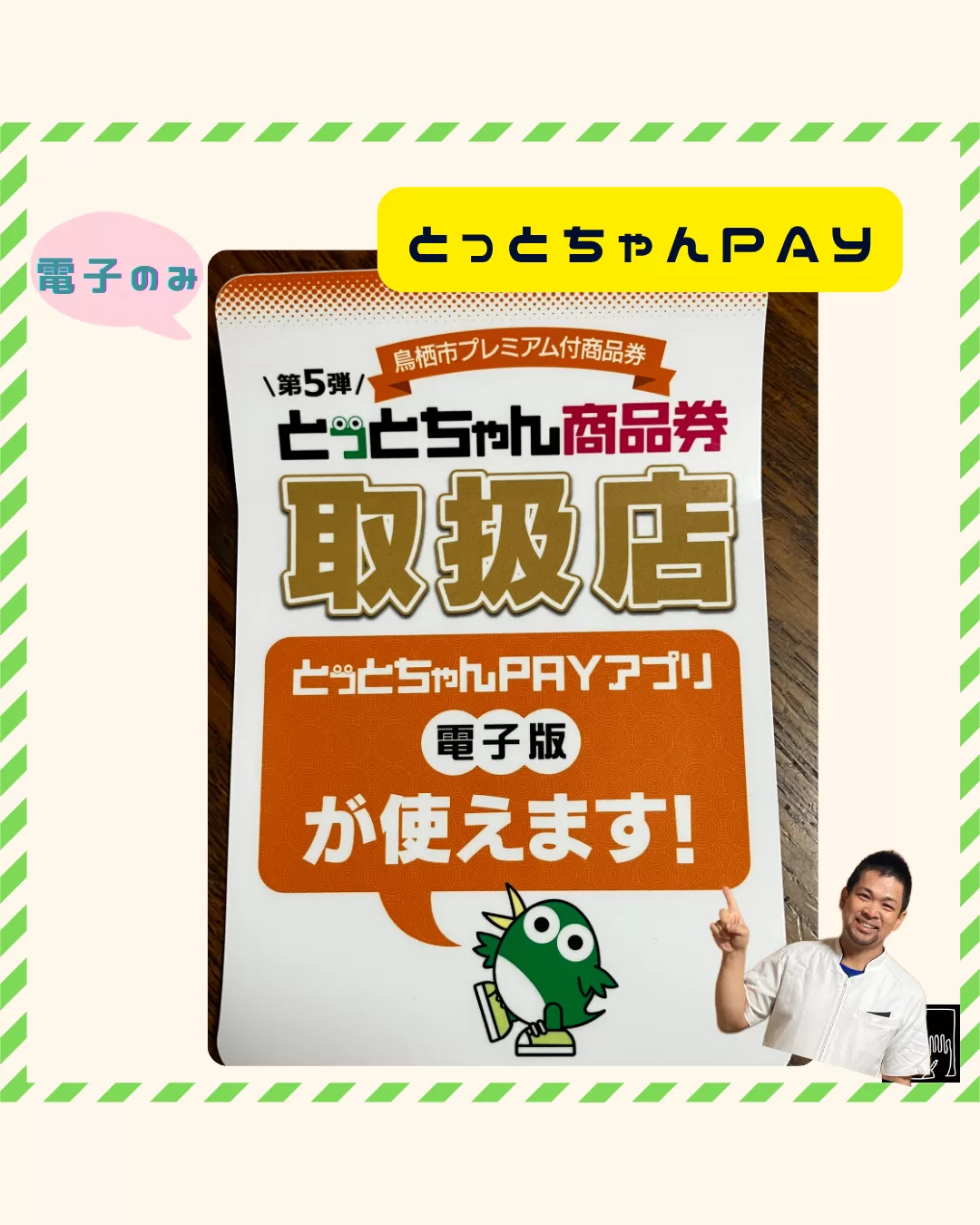 【鳥栖市限定!】プレミアム付商品券 とっとちゃんPAYご利用できます。