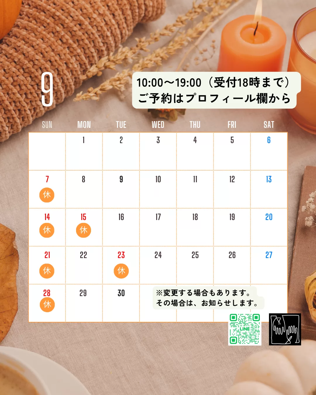 ご予約の際は、カレンダーをご参照下さいね!
