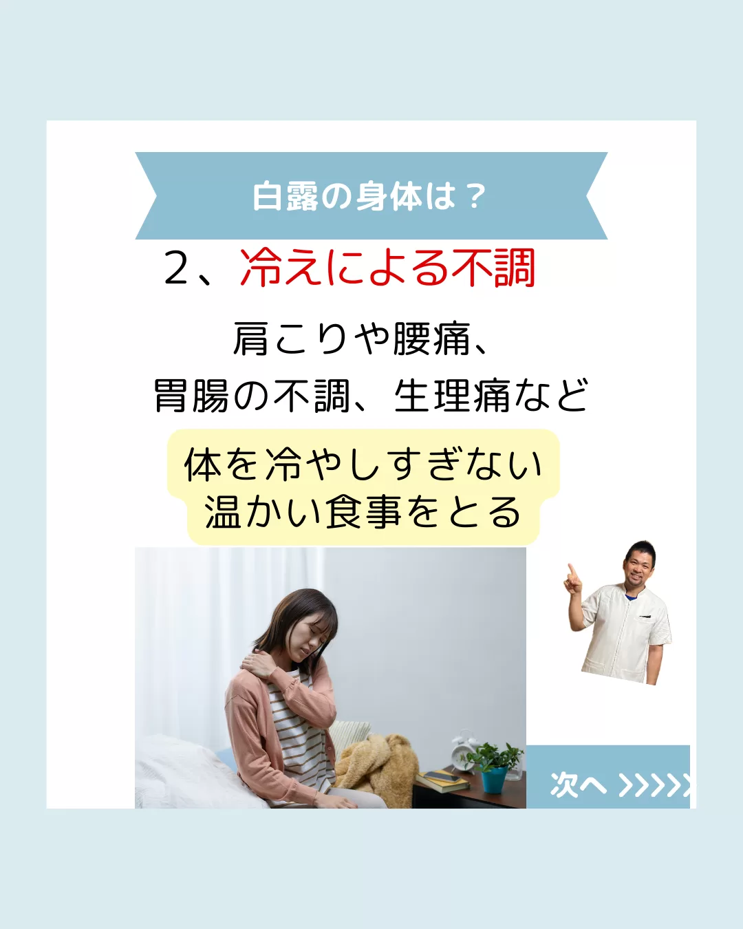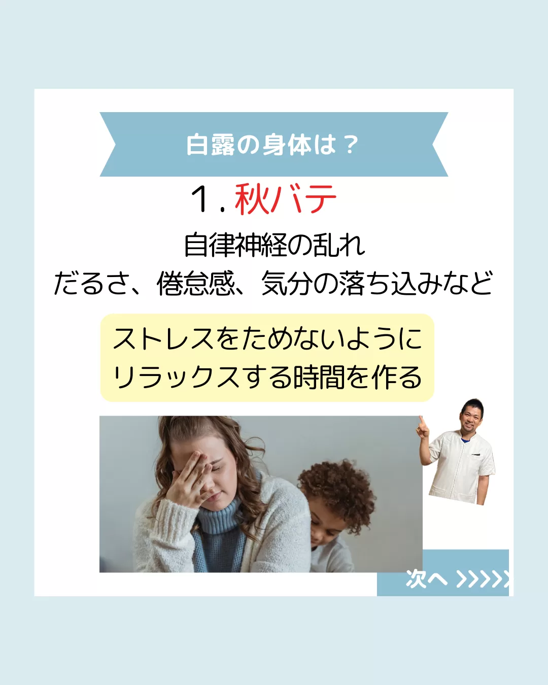 「夏の疲れ」が残っている時期に、「気温の変化」に身体がついていかず、不調を感じやすい時期です。