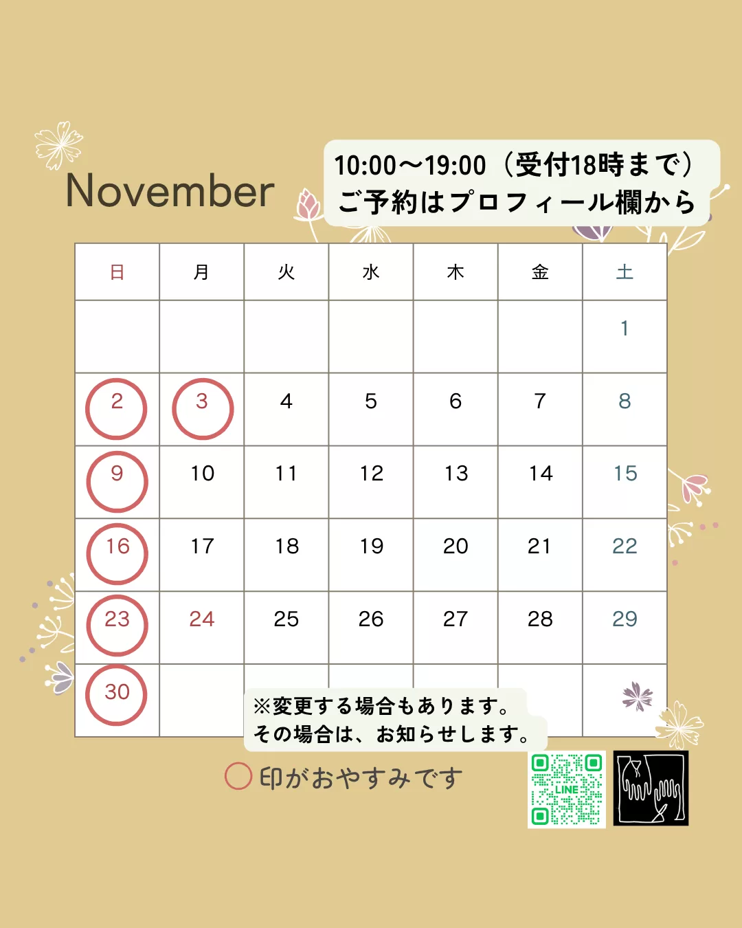 祝日の方が都合がいいよ〜という方はご予約お待ちしていますね。