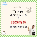 1月のスケジュール 5日からです。 カレンダーをご参照下さいね!12日の祝日はopenしてます。 ※予定は変わることがあります。 その時はお知らせしますね♪ 2026福袋販売 ①贅沢セット 美容全身施 ...